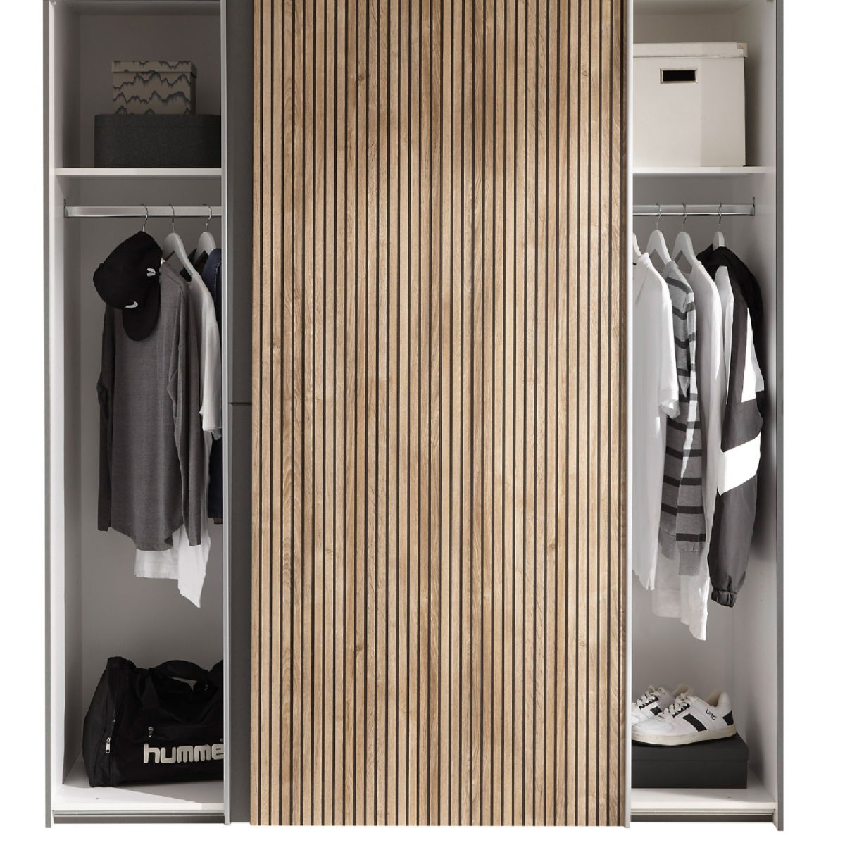 Enhance your bedroom with this sleek and space-saving sliding door wardrobe, designed for both style and practicality. Featuring a hanging rail and top shelf on each side for convenient storage. The smooth sliding mechanism ensures effortless access to your belongings while maximizing floor space.