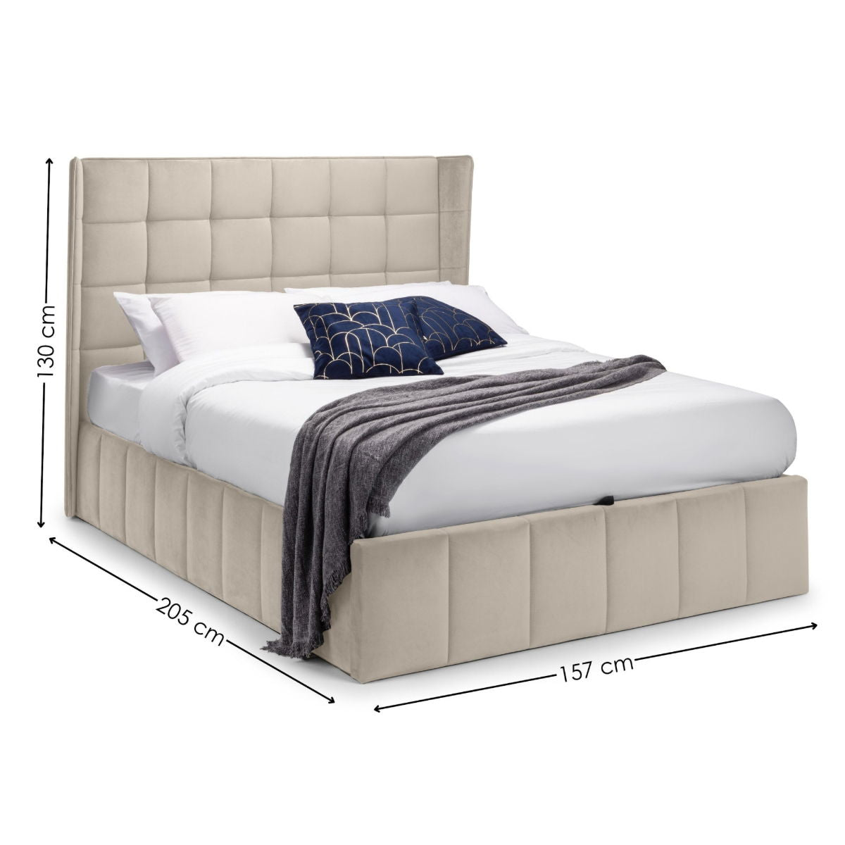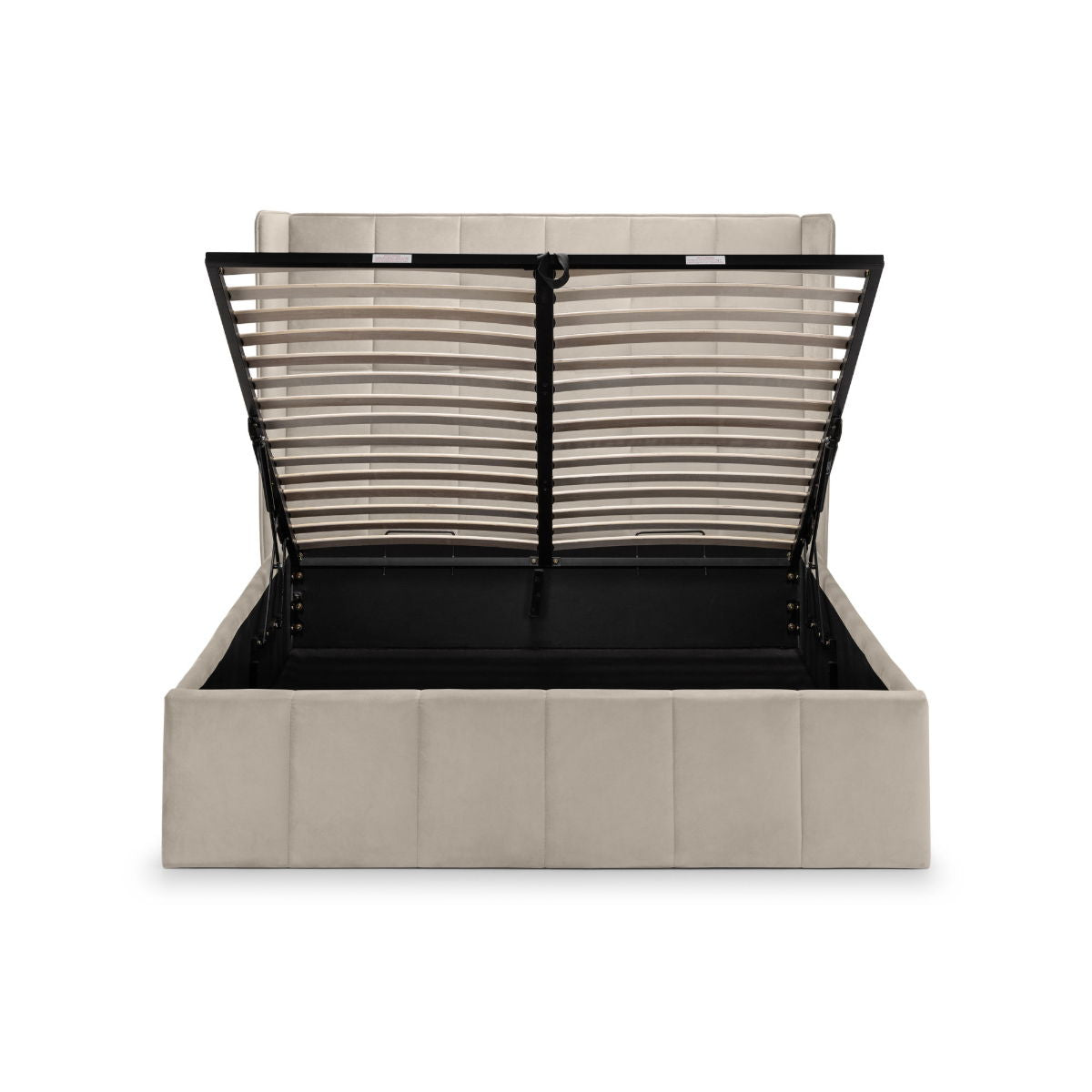 Step into the realm of timeless elegance with the Gatsby Ottoman Bed, a perfect fusion of inspired design and functional luxury. The beautiful winged headboard brings a touch of sophistication to your bedroom, while the pull-up ottoman space beneath enhances your storage solutions with both convenience and refinement. Finished in a stunning grey velvet, the bed exudes an aura of luxury and comfort. The detailed headboard adds a distinctive and stylish touch, creating a bedroom centerpiece that seamlessly blends opulence with practicality.