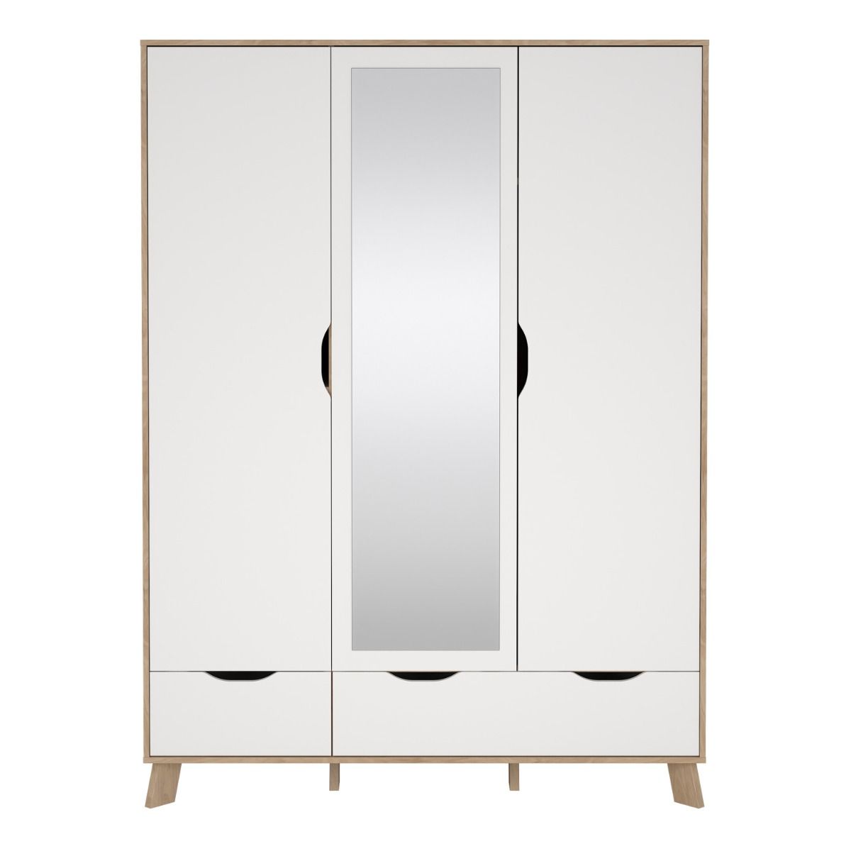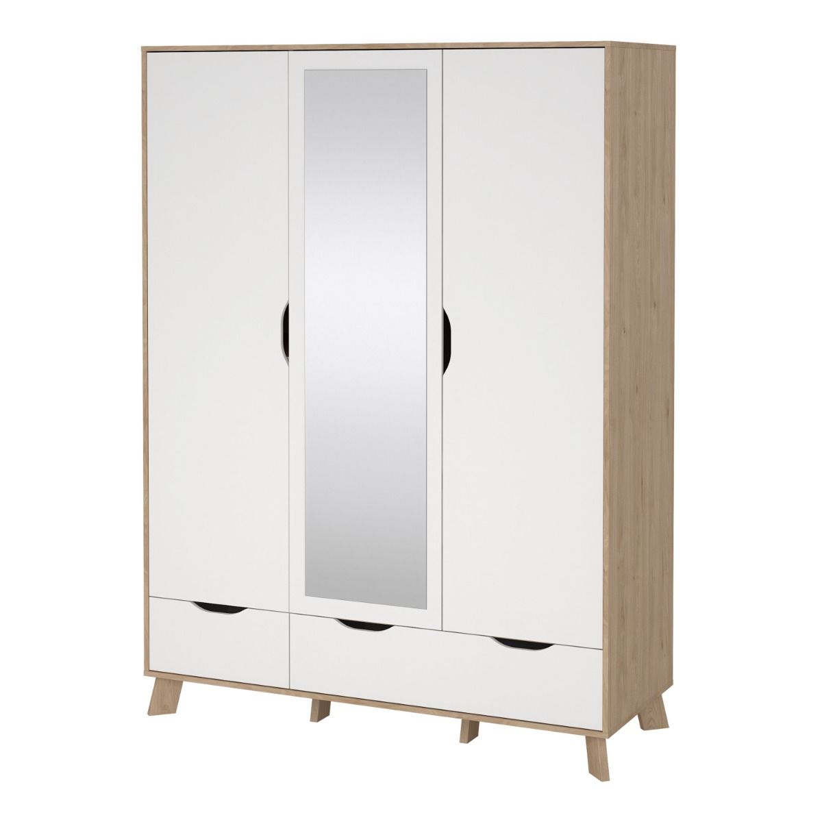 Ikast Wardrobe 3 Doors 2 Drawers with Mirror in Jackson Hickory and White