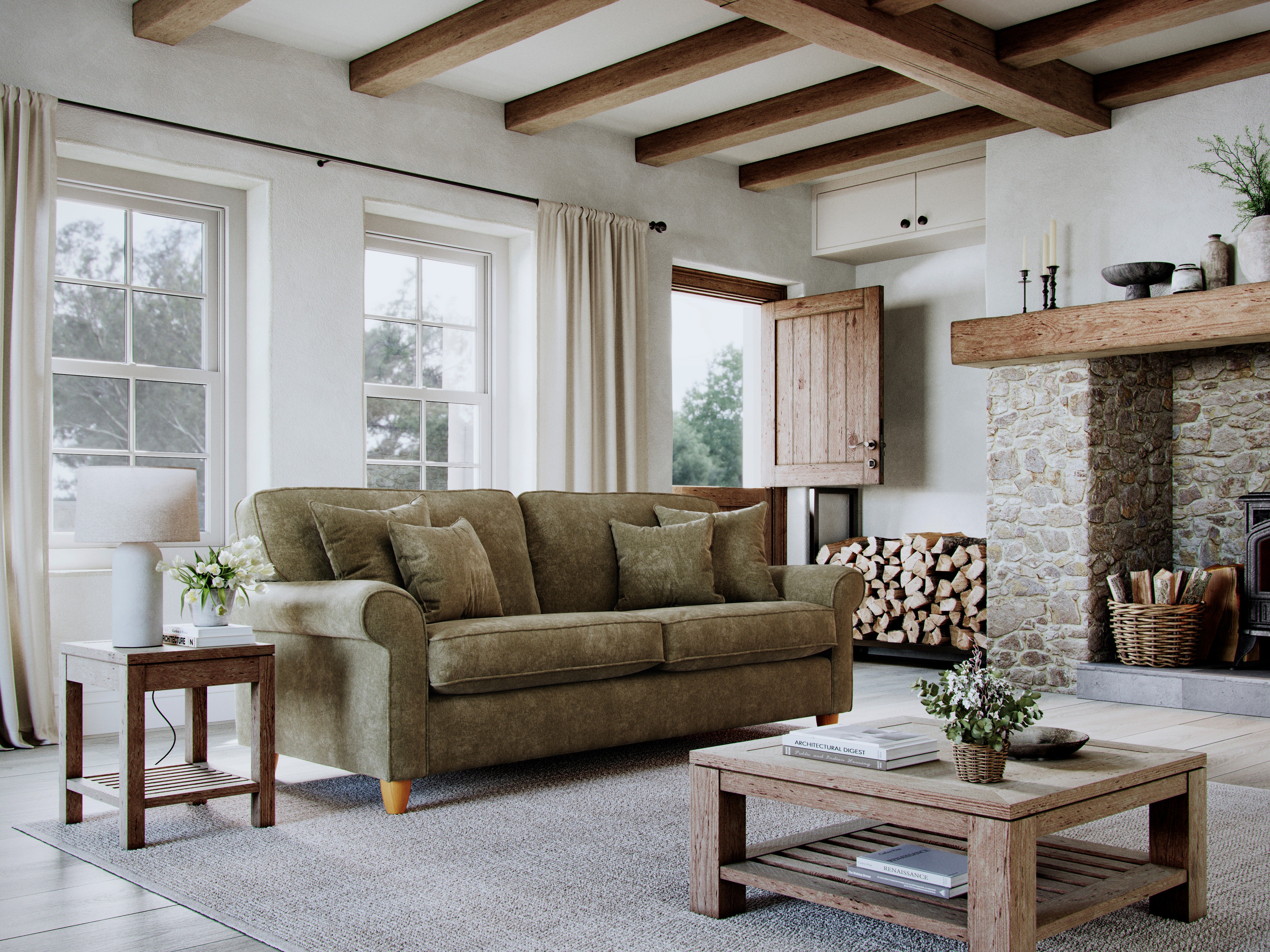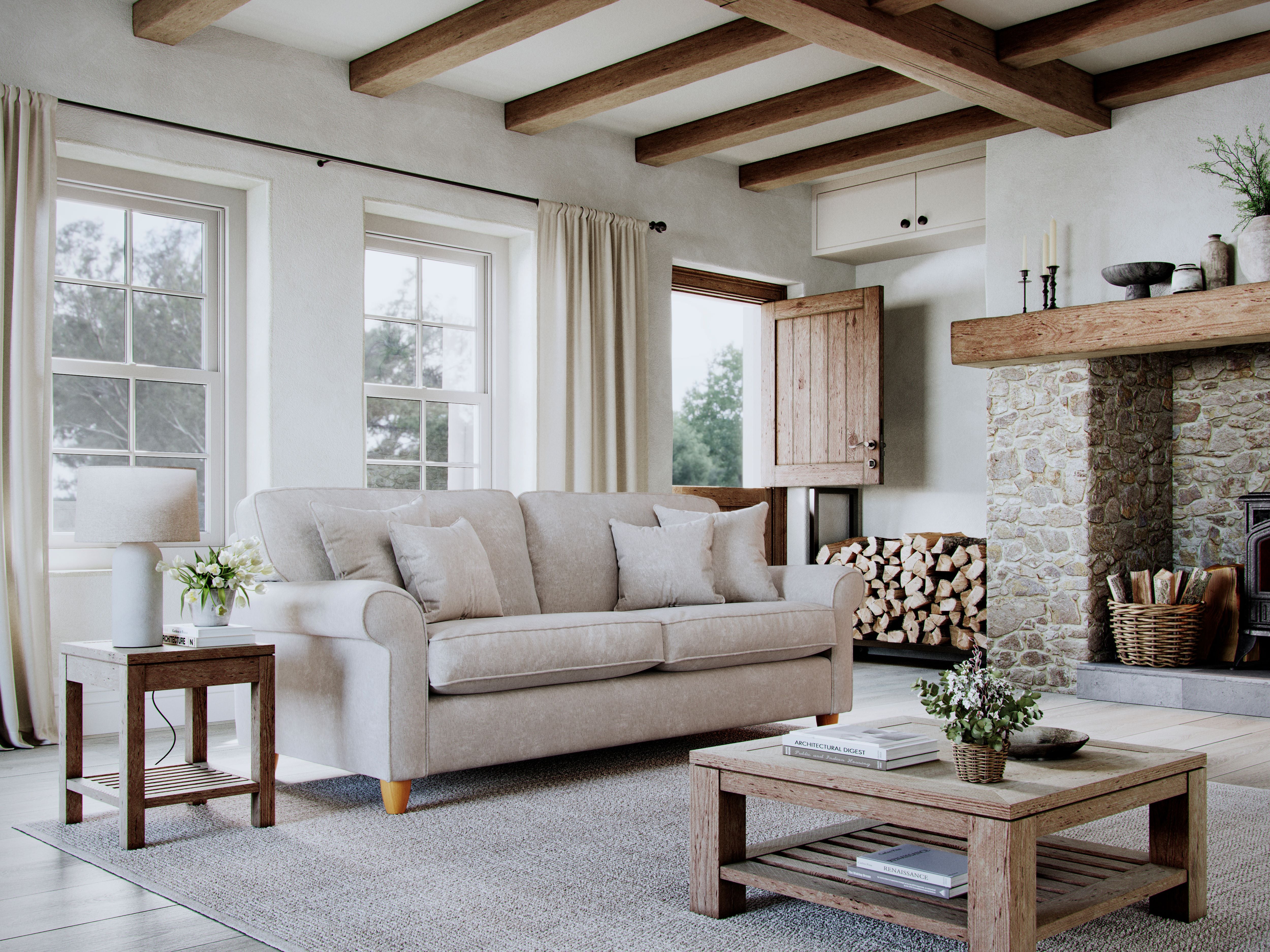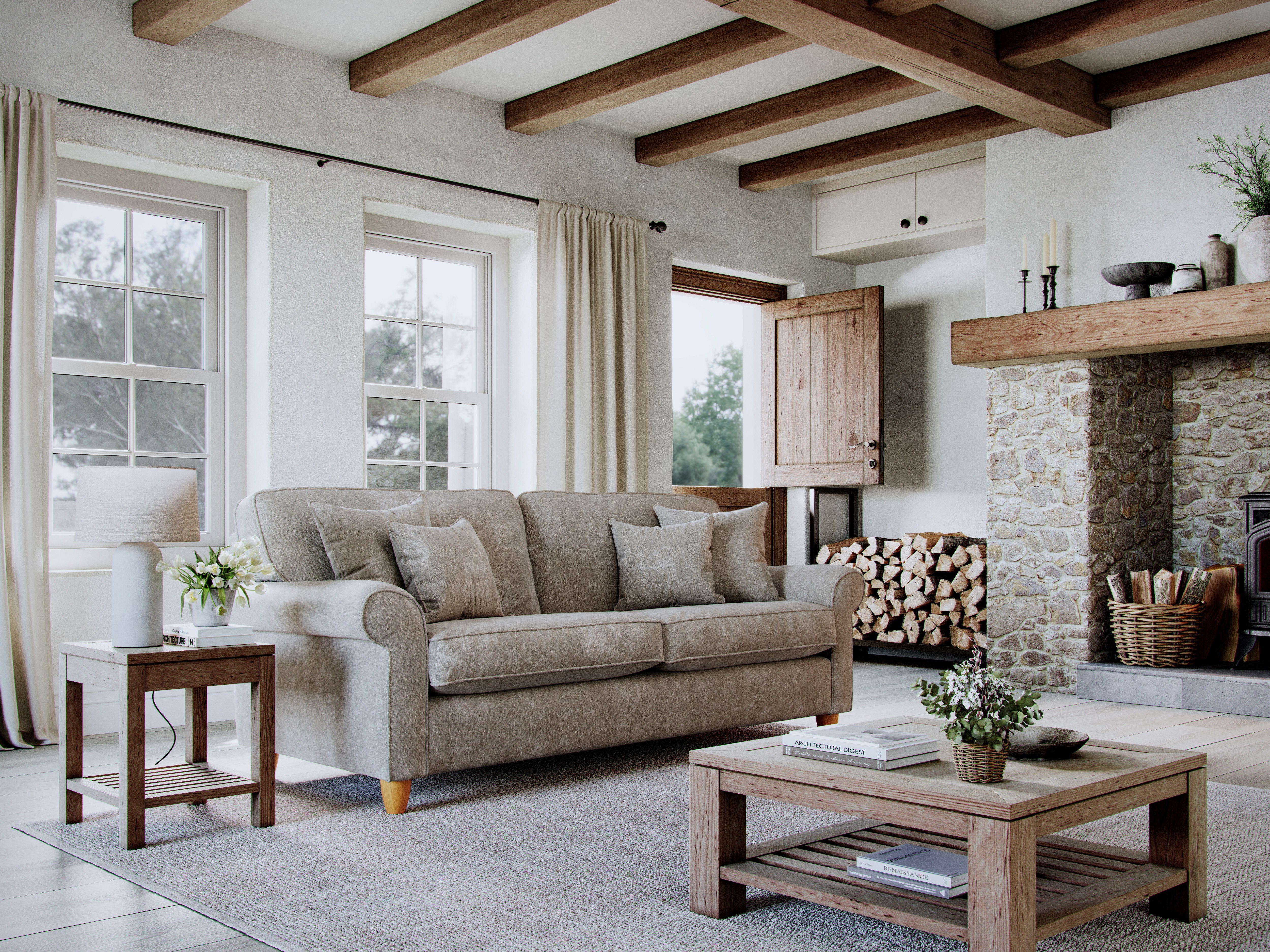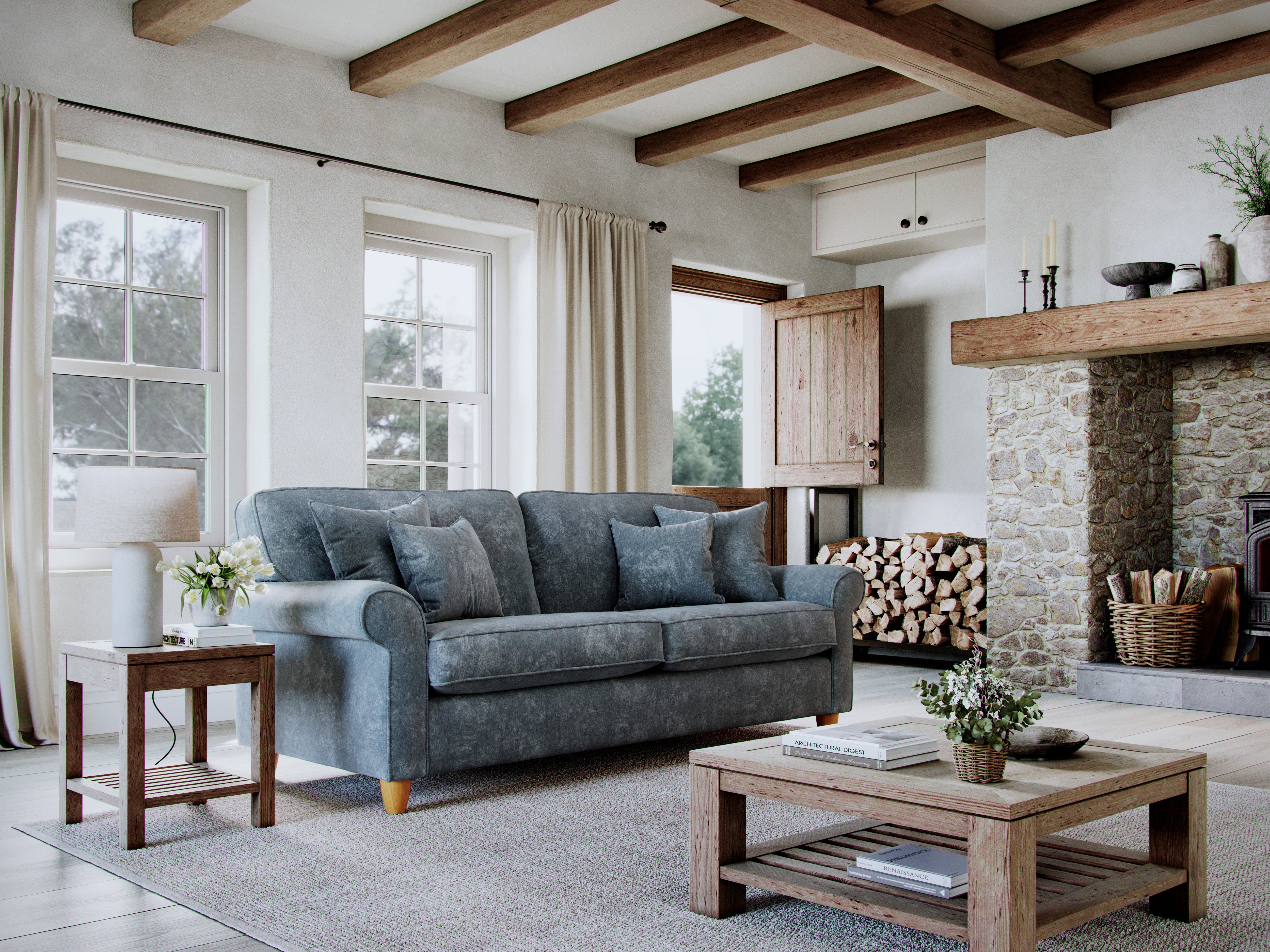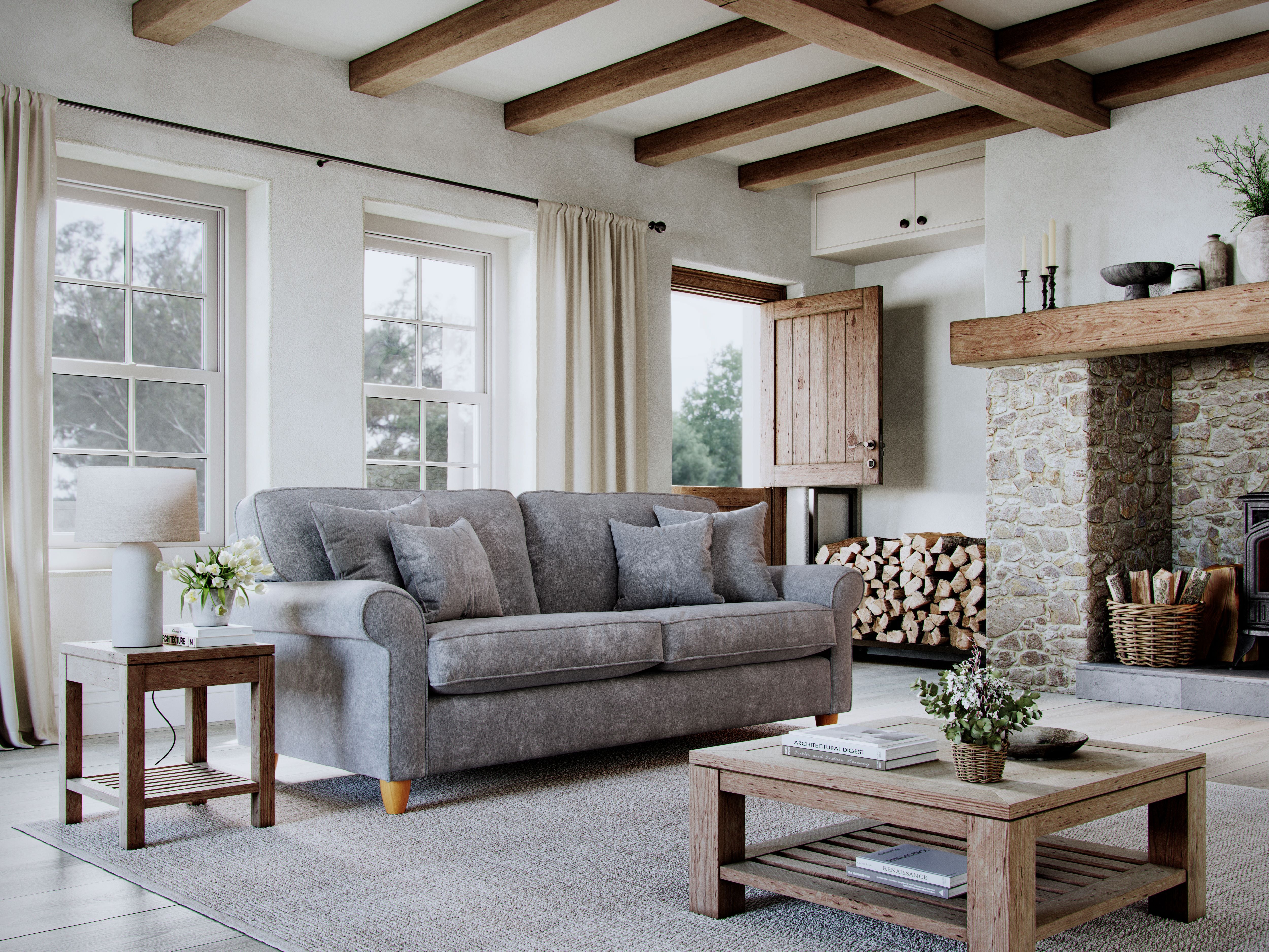 Model 33 - 2 Seater Sofa - Fabric Sofa with Rolled Arms & Scatter Cushions