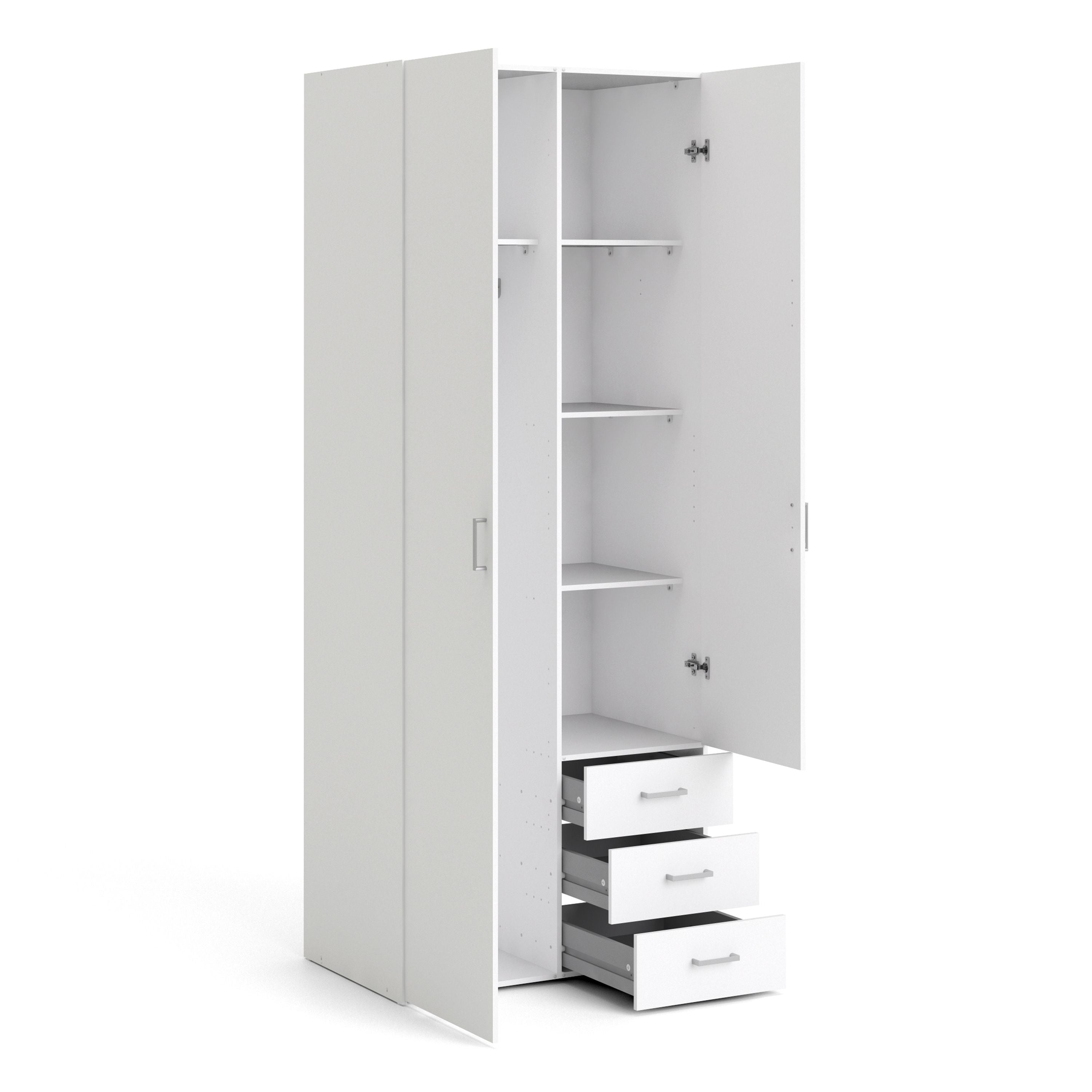 Space Wardrobe - 2 Doors 3 Drawers in White 2000