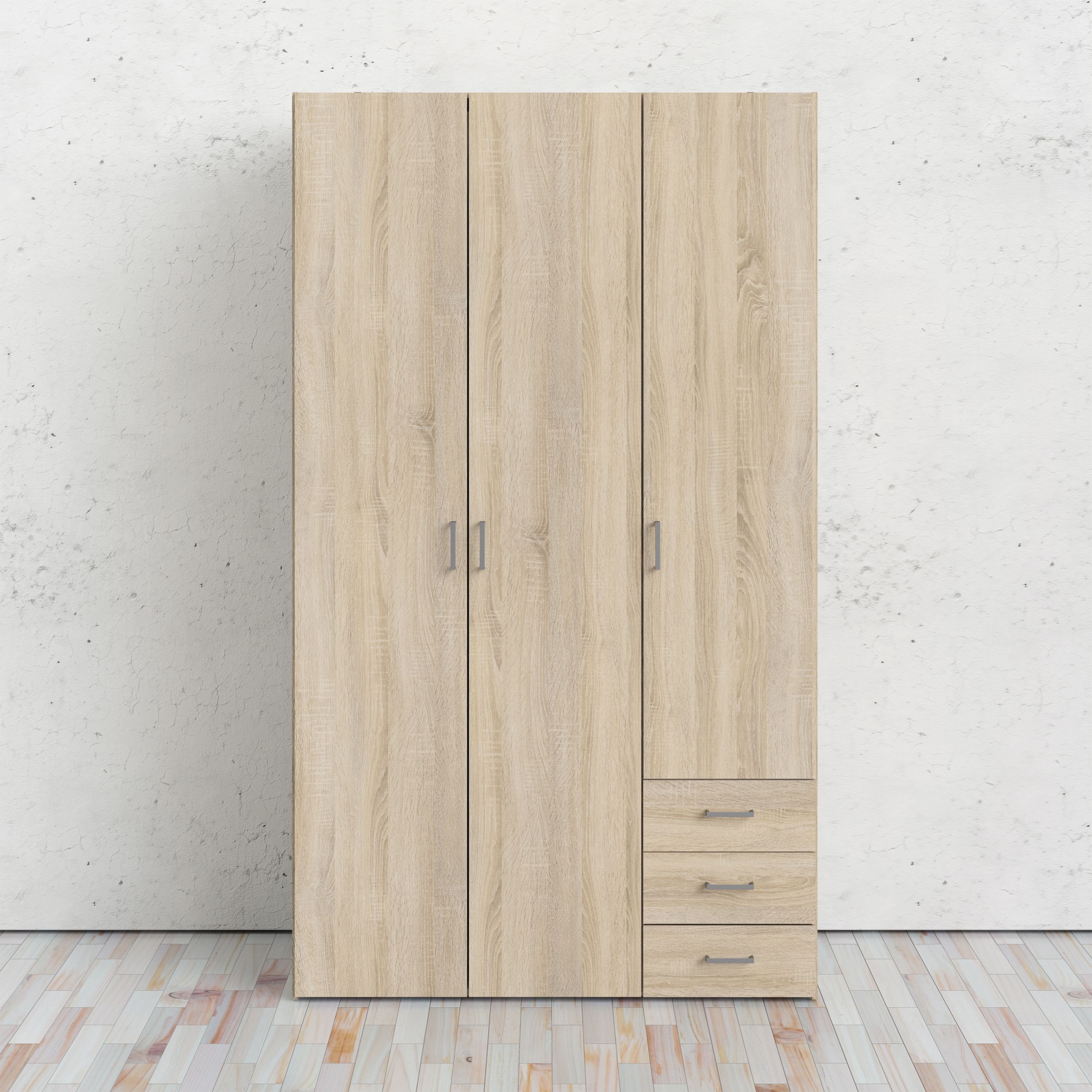 Space Wardrobe - 3 Doors 3 Drawers in Oak 2000